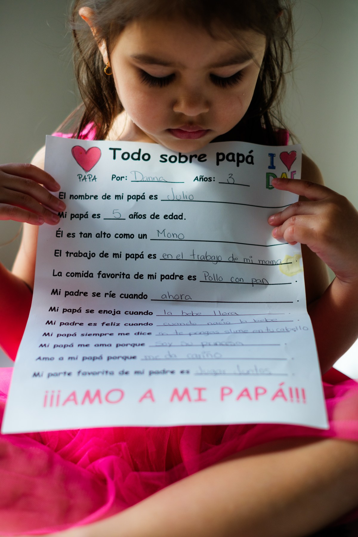 Zambrano Belandría unclipped a light pink bow to crown Danna’s ponytail.